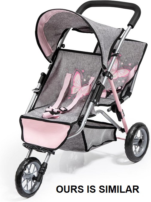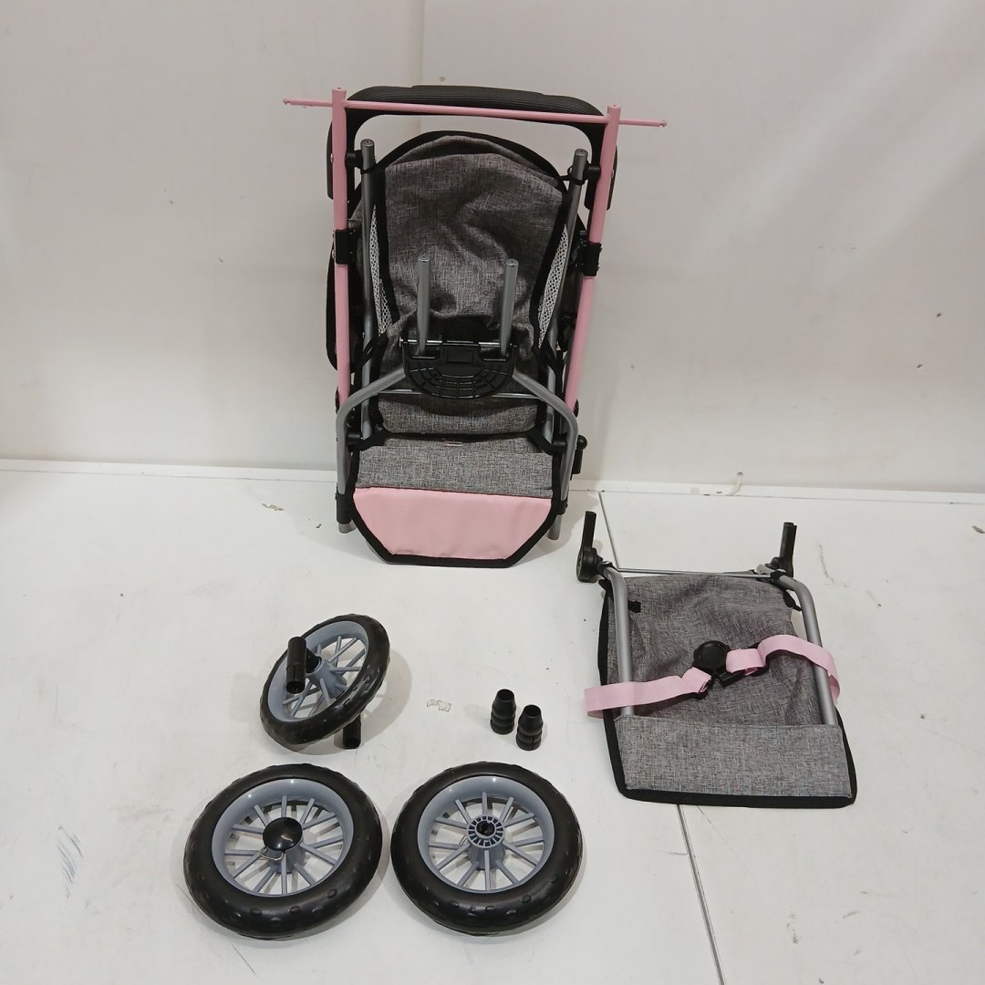 SMALL 3-WHEEL DOLL PRAM BUGGY FOR KID'S DOLLS - SINGLE SEAT - PINK/GREY