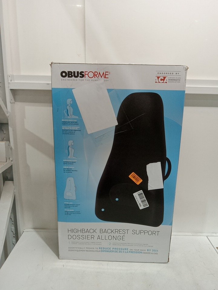 OBUSFORME HIGHBACK BACKREST SUPPORT WITH LUMBAR SUPPORT & CHAIR STRAPS - 18" x 7" x 31" - BLACK (MODEL: HB-BLK-CBc)