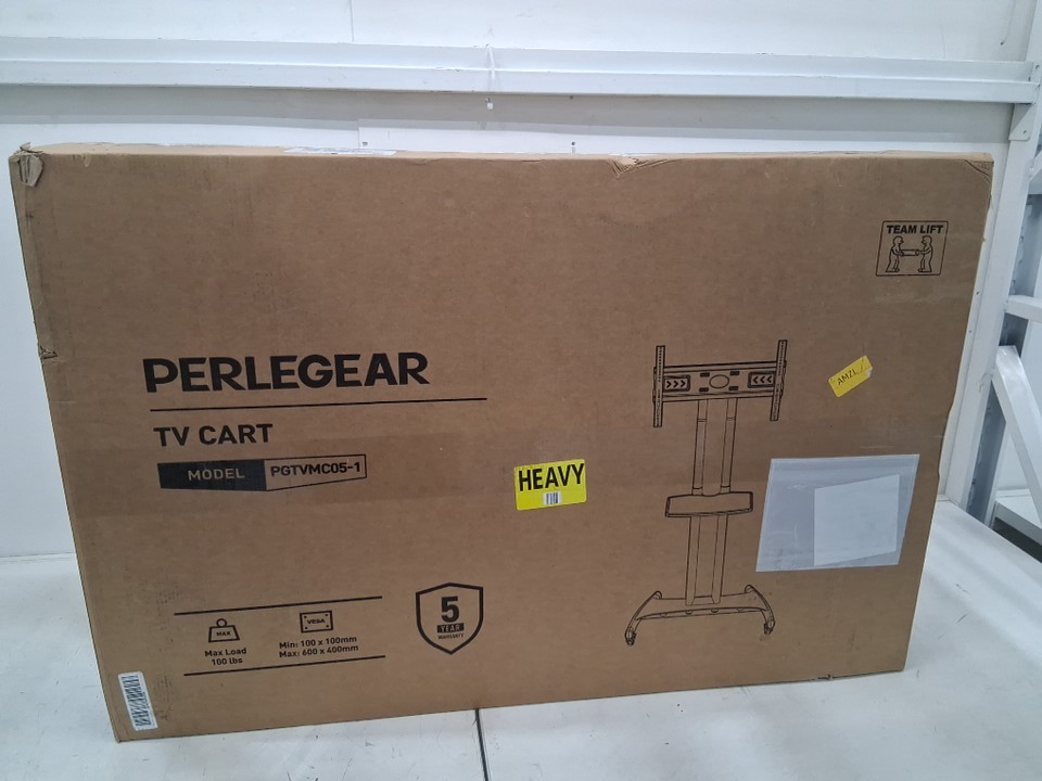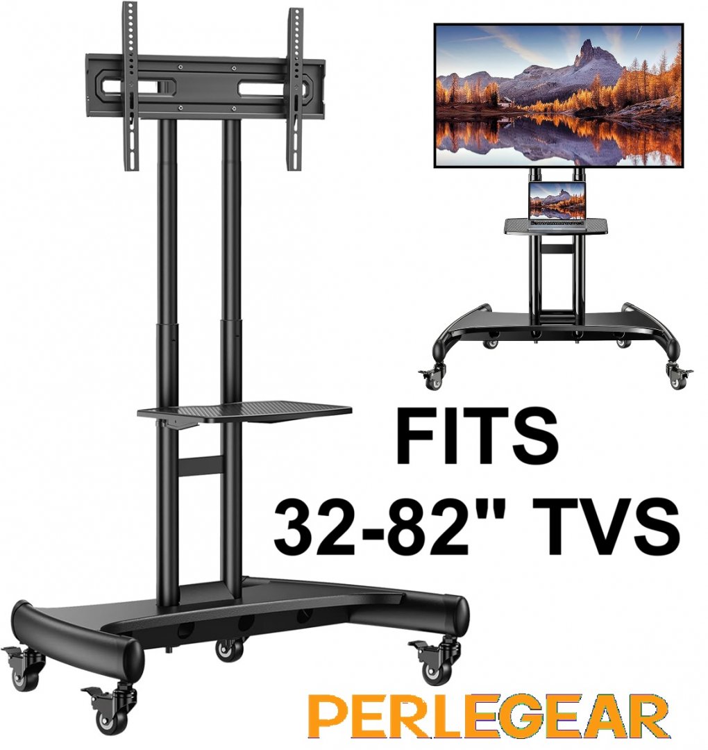 perlegear mobile tv cart with adjustable height and tilt - fits 32"-48" tvs, 39"-58" height - black - (model: pgtvmc05-1)