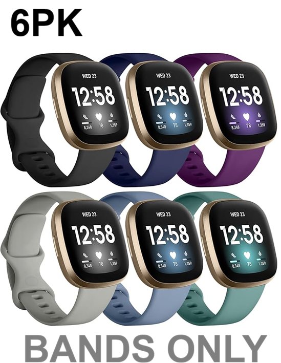 6PK Unbranded Sport watch Bands - 7.1" - 8.7" Compatible with Fitbit Versa 3/4/Sense/Sense2 - Multicoloured