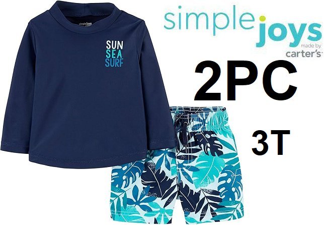 2pc boys simple joys by carter swimsuit set - size 3t - navy/tropical