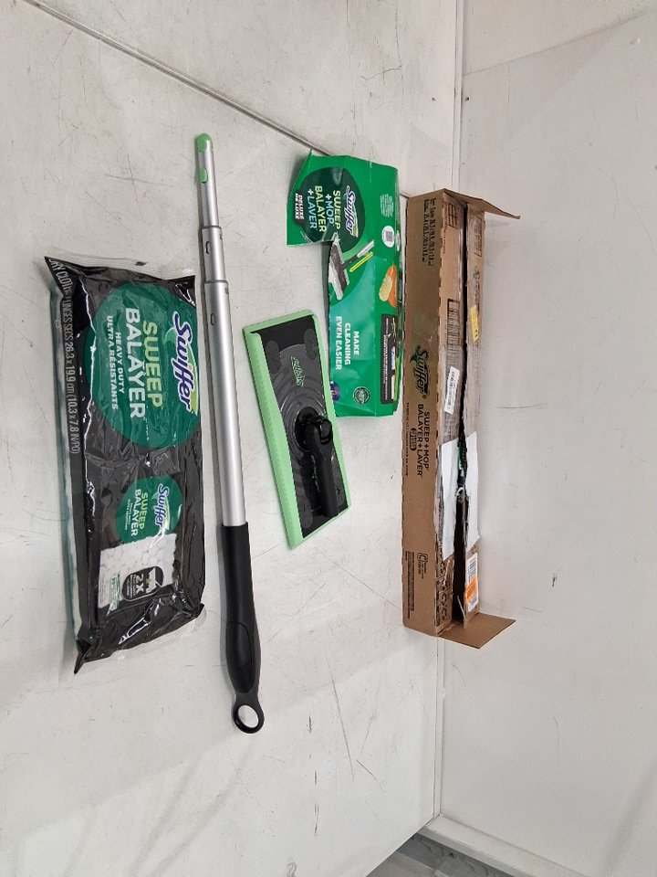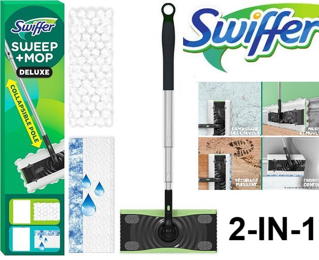 Swiffer 2-in-1 Sweep and Mop Deluxe Multi surface Mopping and Sweeping Kit with replacement pads (5 dry) - green/black