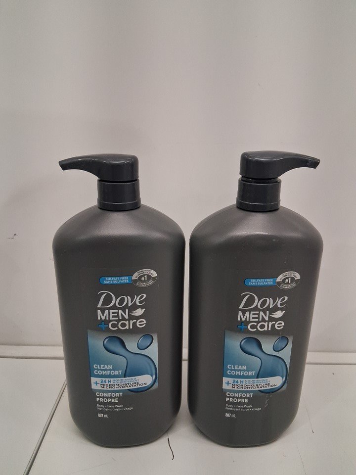 2 dove men + care 24h nourishing body + face wash - comfort clean - 887ml/each