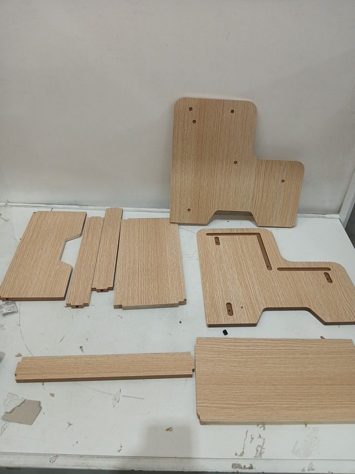 Please note there is a presence of damage on the corners of some of the parts, see photos. Generic hardware will likely be required for assembly considering there is none in the package.