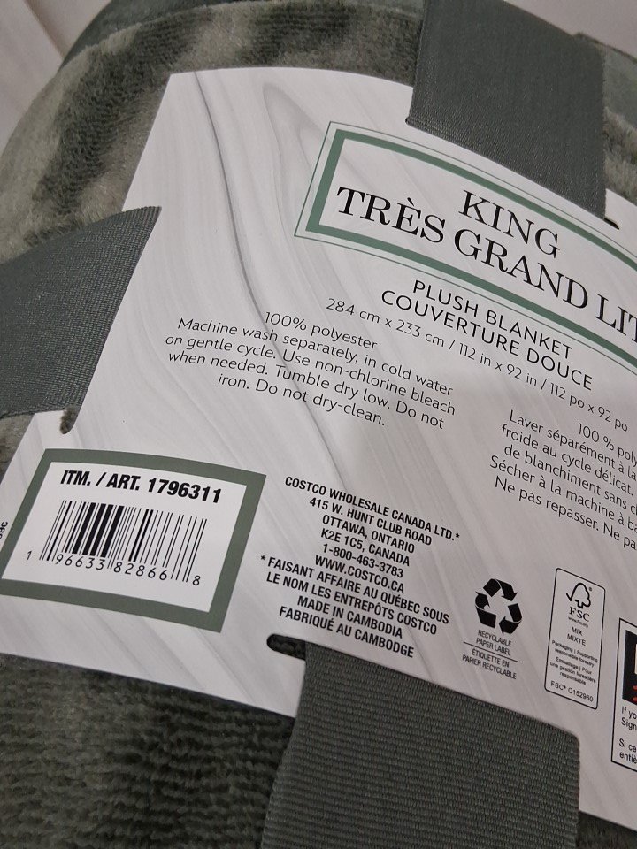 KIRKLAND SIGNATURE PLUSH BLANKET - KING (92" X 112") - GREEN (MODEL: 1796311)