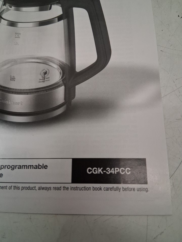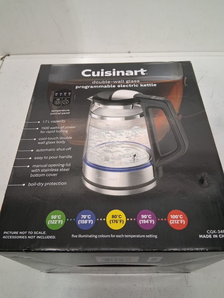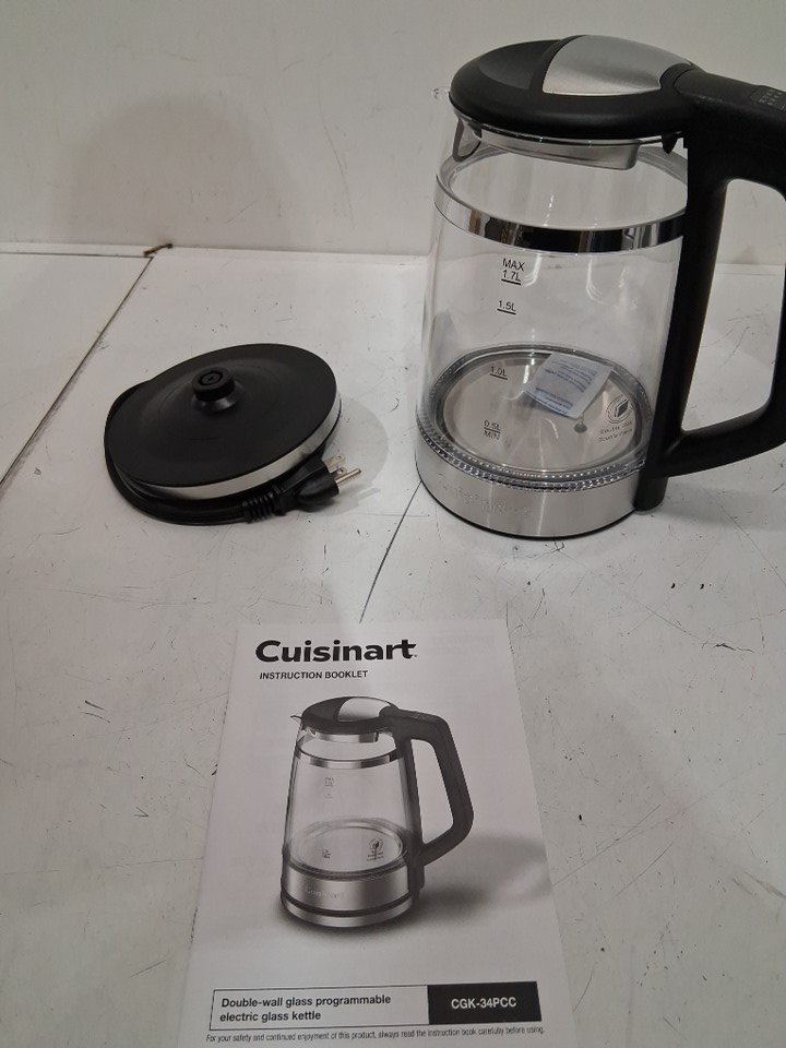 cuisinart cordless electric double wall programmable glass kettle - 1500w - 1.7l - black/stainless steel - (model: cgk-34pcc).