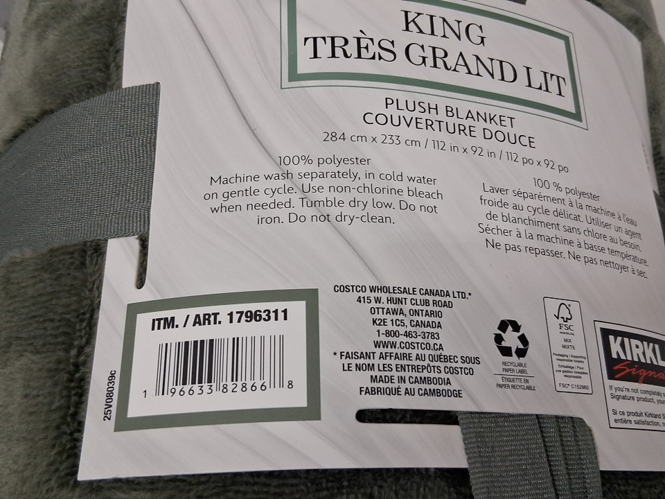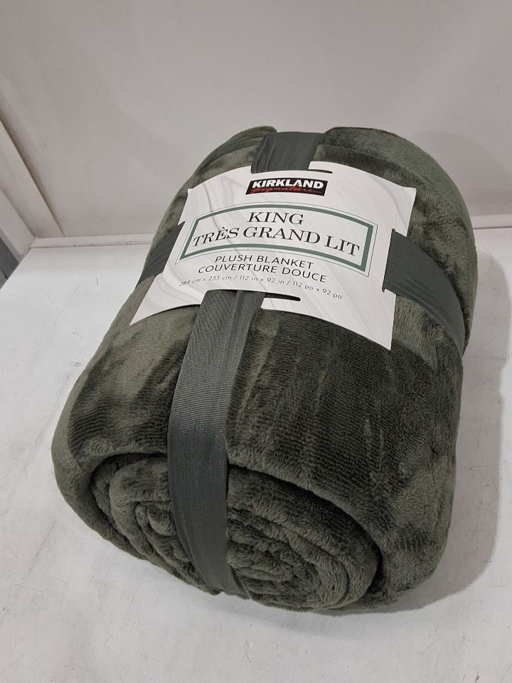 KIRKLAND SIGNATURE PLUSH BLANKET - KING (92" X 112") - GREEN (MODEL: 1796311)