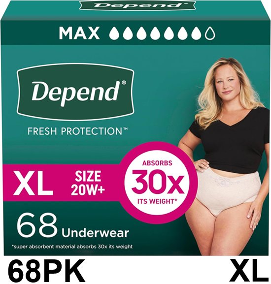 68PK women's depend fresh protection disposable underwear - extra large - pink (model: 5419903)