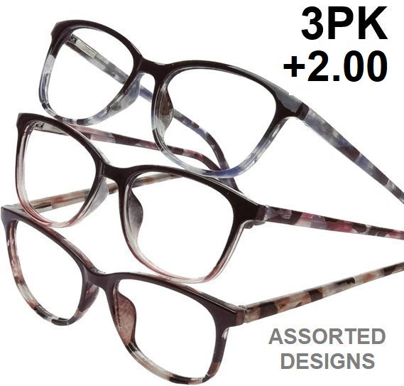 3PK Innovative Eyewear chloe Reading Glasses - +2.00 - Assorted Designs
