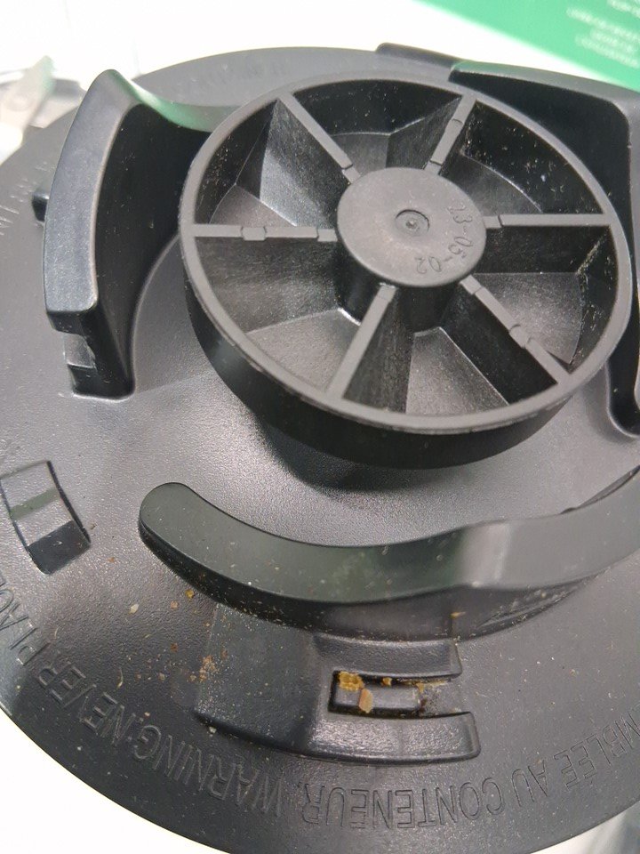 Tested for power. Has some residue on the base and some wear on the cups and blade.