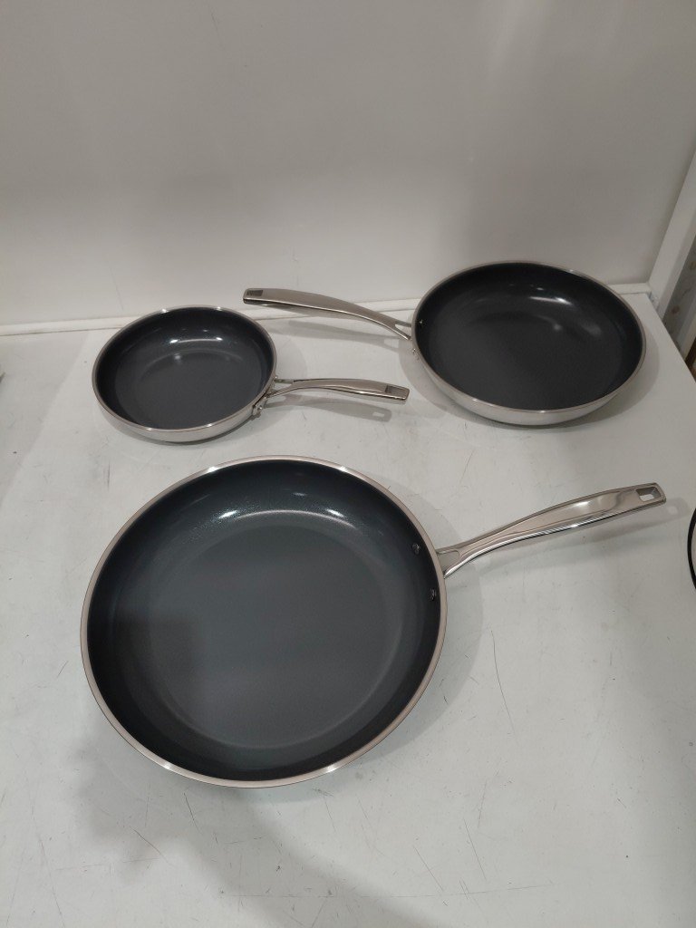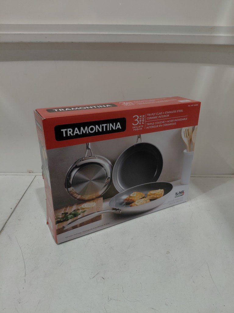 3pc Tramontina Tri-Ply Clad Ceramic Non-stick induction Skillet Set - 8.5" / 10.5" / 12.5" - Stainless Steel (model: 1945362)