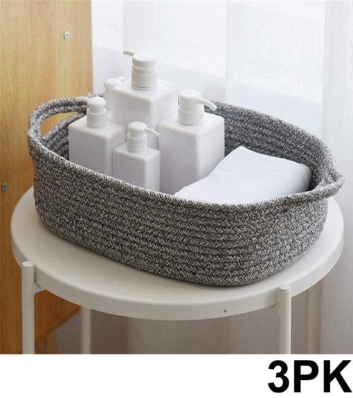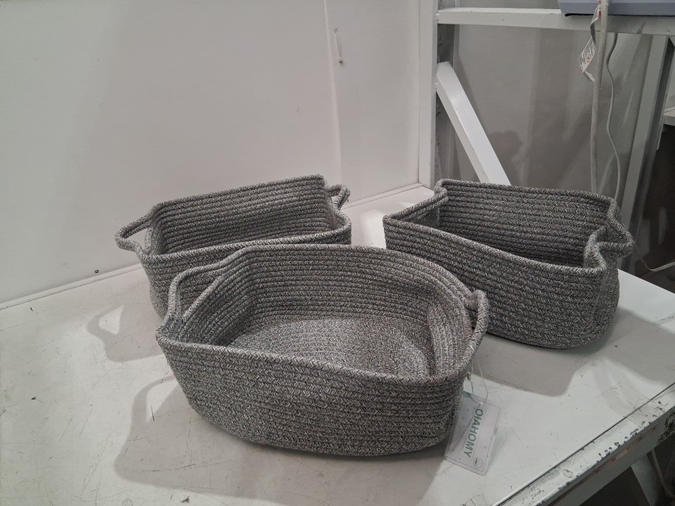 3PK oiahmony Rectangular Rope Storage Basket- grey