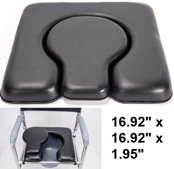 Unbranded C-Shaped Commode Seat Cushion, Black Padded Cushion for Bedside Commodes, Chairs, Shower Wheelchairs - 16.92" x 16.92" x 1.95" - Black
