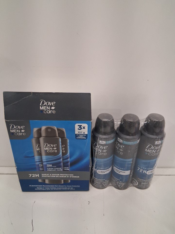 3PK DOVE men care spray deodorant - 107g each - clean comfort