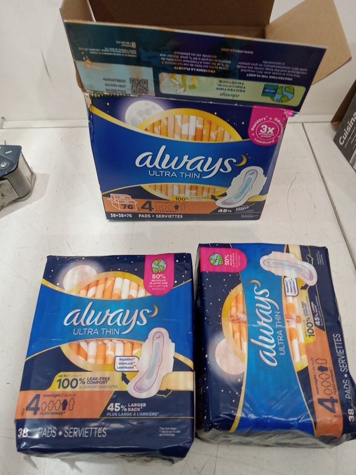 76pk Always Ultra Thin Overnight Pads Unscented with Wings