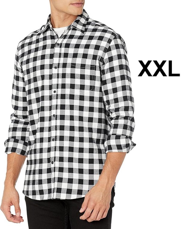 men's amazon essentials Long-Sleeve Flannel Shirt - XXL - black white buffalo plaid