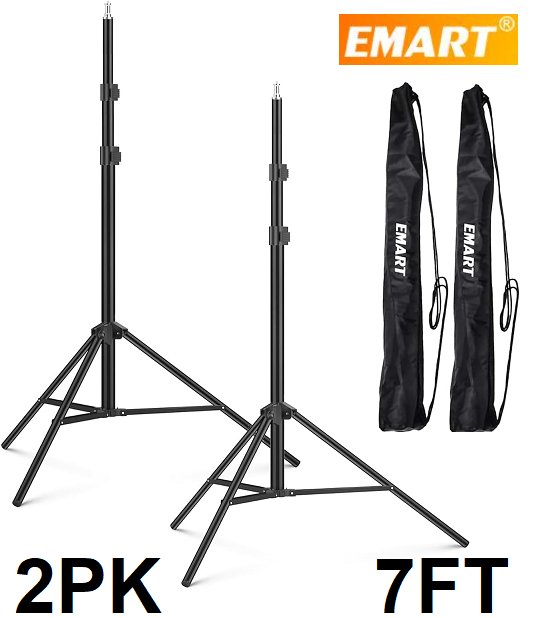 2PK EMART Light Stand Tripod for Photography - 7FT - Black - (Model: em-ls703-2)