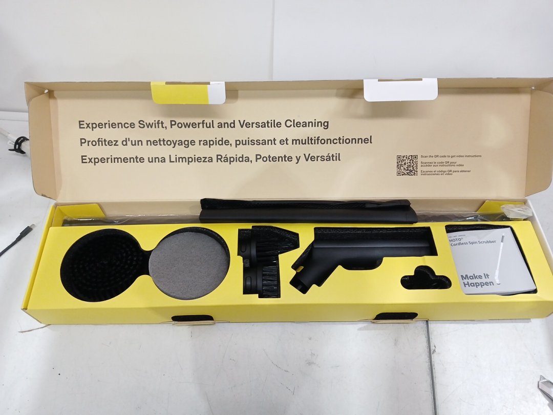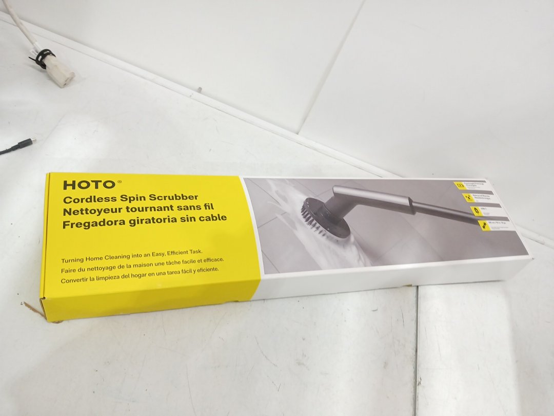 hoto cordless electric spin scrubber brush with 6 Brush Heads - 35"-47" handle - black (model: QWQJS001)