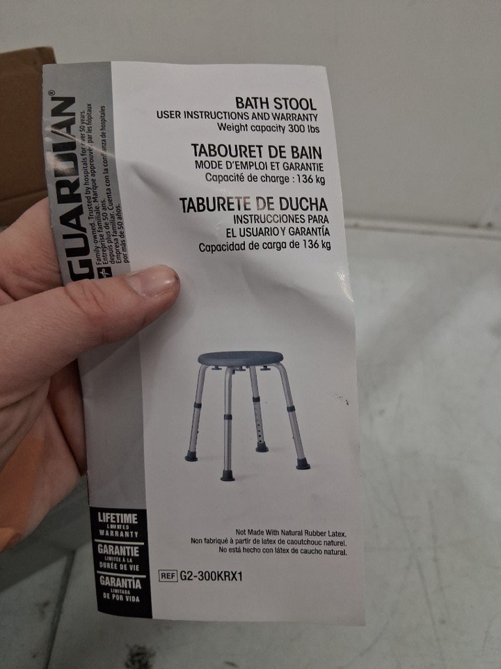 MEDLINE GUARDIAN NON-SLIP SHOWER/BATH STOOL with ADJUSTABLE HEIGHT - 13.5" - 20.5" - 300LB MAX CAPACITY - GREY (MODEL: G2-300KRX1)