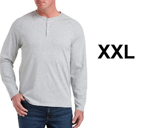 MEN'S AMAZON ESSENTIALS REGULAR FIT HENLEY LONG SLEEVE SHIRT -XXL- LIGHT HEATHER GREY