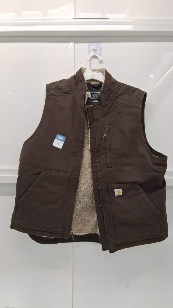 women's carhartt relaxed fit washed duck sherpa-lined mock-neck vest - large - dark brown (model: ov4277-w)