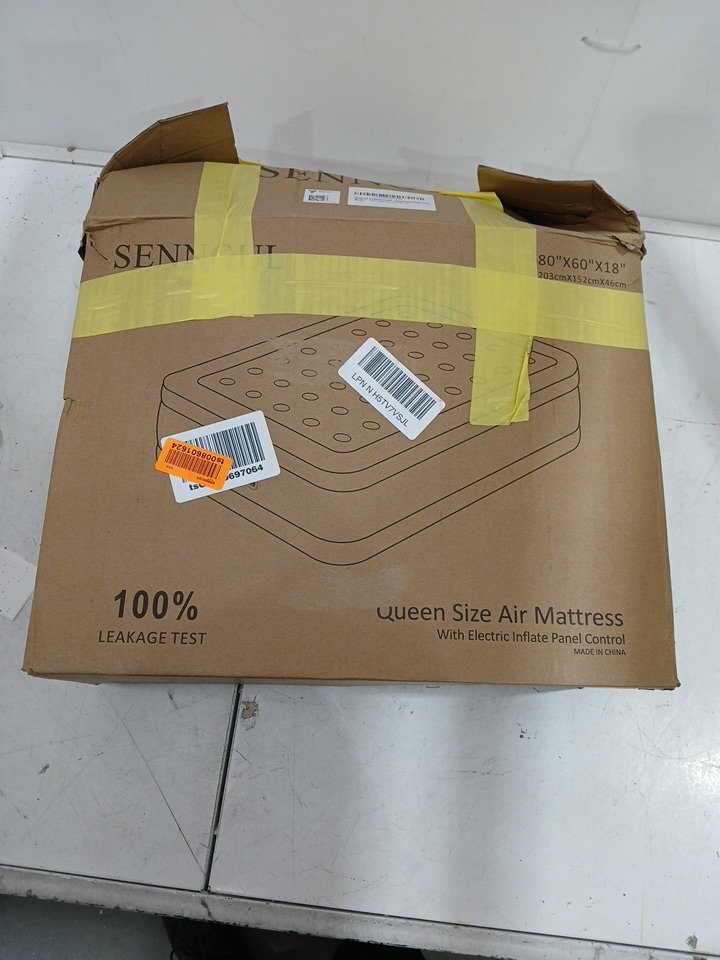 sennoul self-inflating air mattress - queen - 14" height - blue/cream