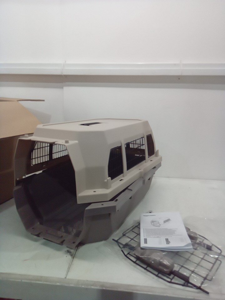 AMAZON BASICS PET CARRIER KENNEL WITH WIRE VENTILATION - 23" - BEIGE/GREY