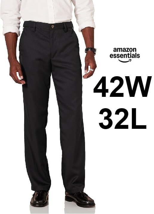 Men's Amazon Essentials Classic-Fit Expandable Waist Flat-Front Dress Pant - 42W x 32L - black (style: MAE65002SP18_S)