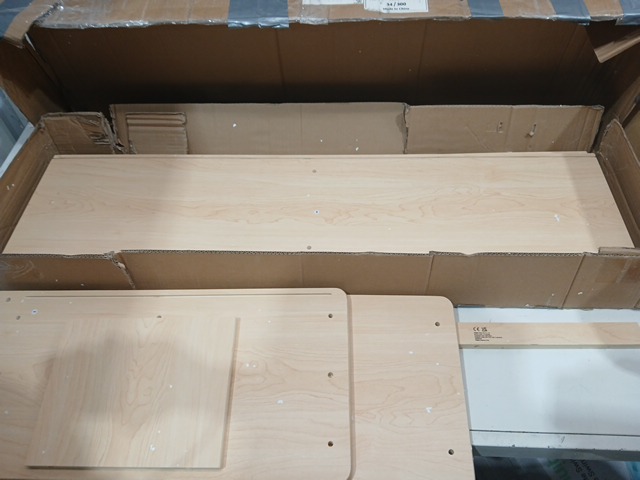 One of the pieces are cracked. Also there is no manual so we cannot guarantee all pieces are present. Hardware is also missing.