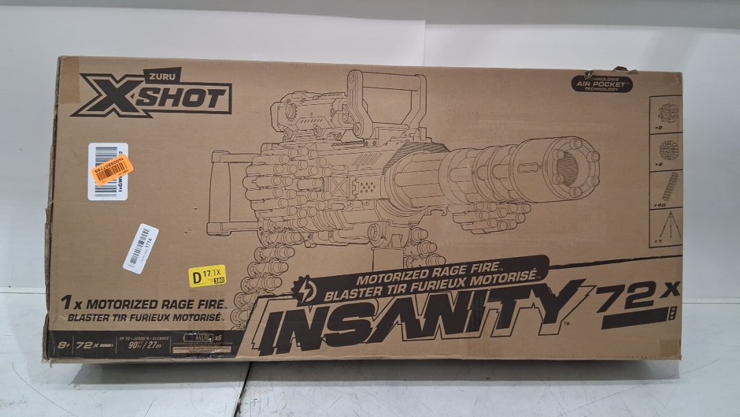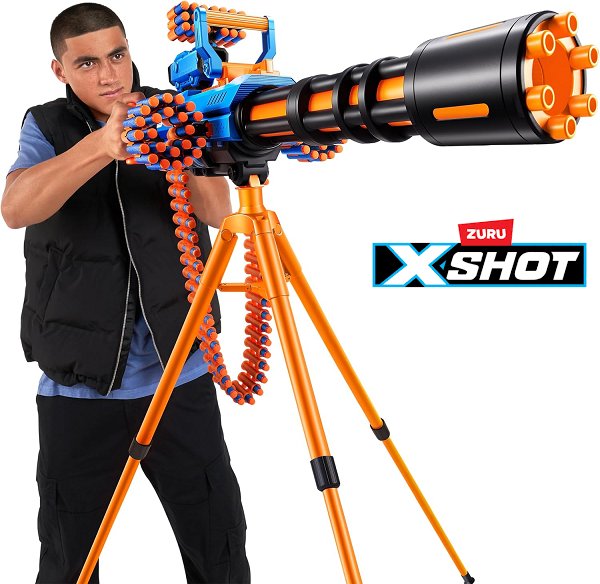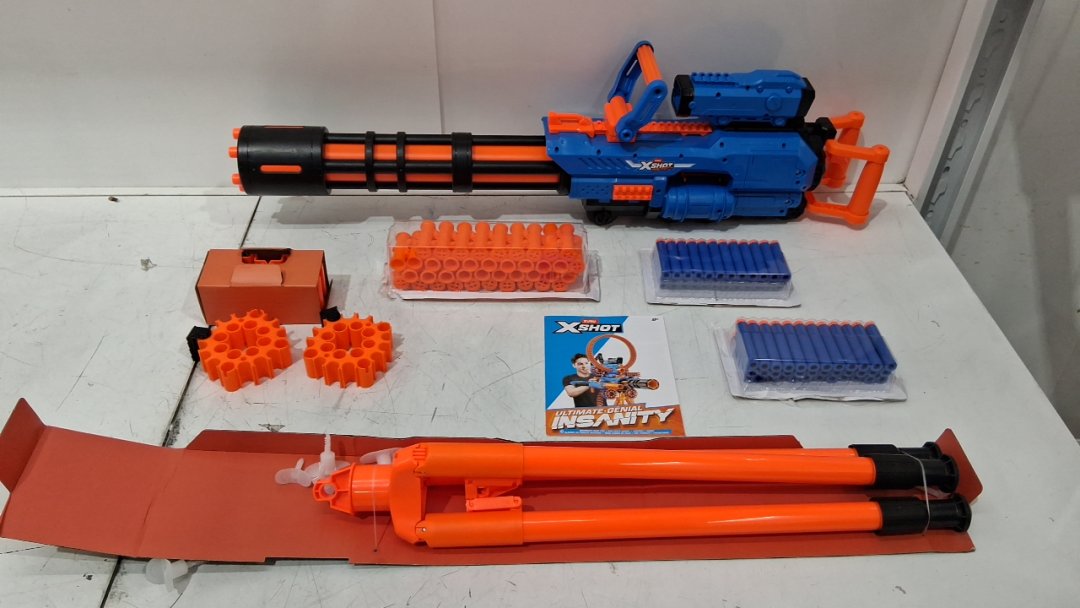 Zuru XSHOT Insanity Motorised Gatling Blaster with Tripod Stand and darts - blue/black/orange