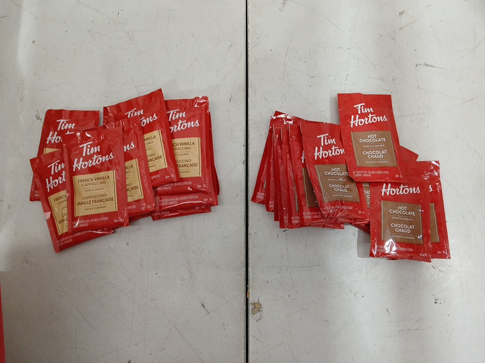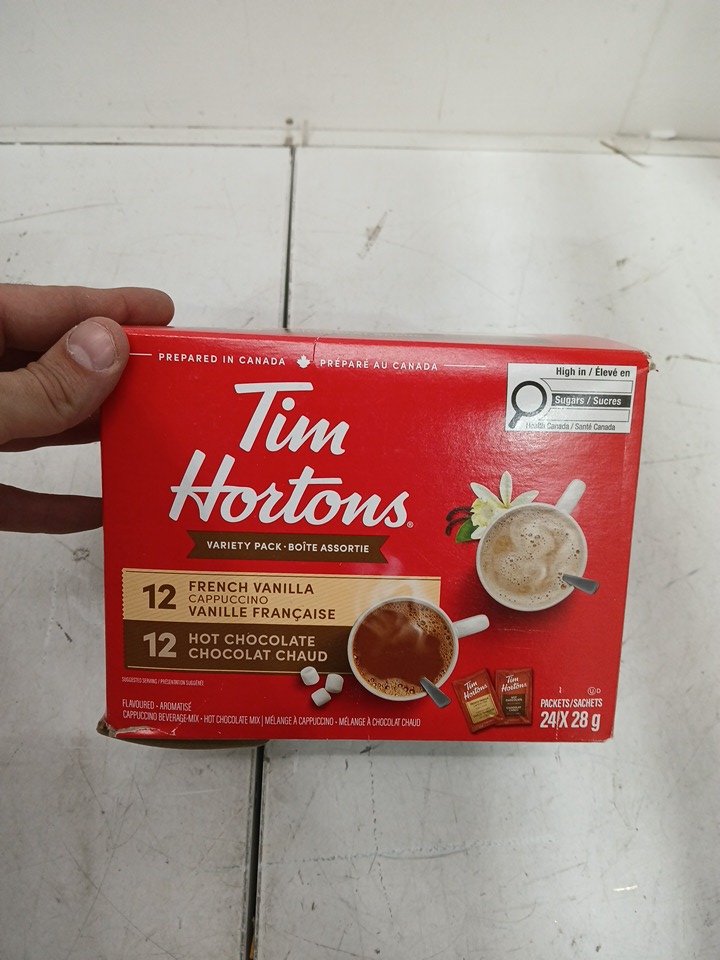 24pk Tim Hortons (12)Hot Chocolate & (12)French Vanilla Cappuccino Mix Variety Pack