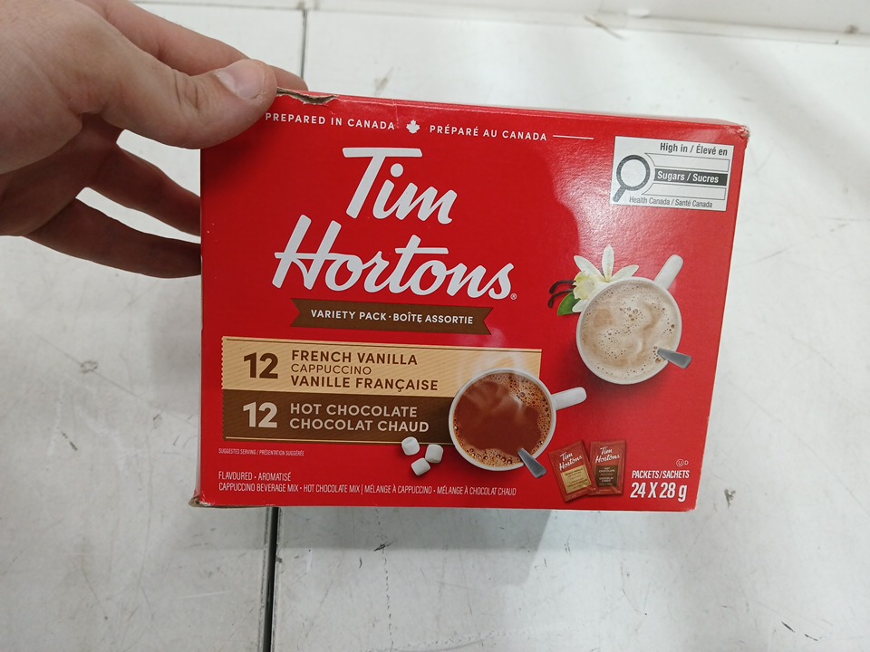 24pk Tim Hortons (12)Hot Chocolate & (12)French Vanilla Cappuccino Mix Variety Pack