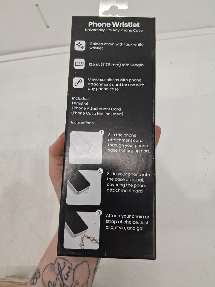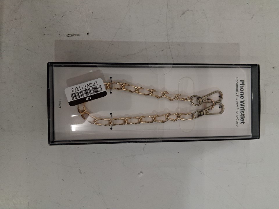 universal fit phone wristlet - 12.5" - Gold Chain/WHITE Leather