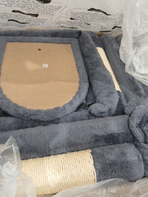 FEANDREA CAT SCRATCHING POST WITH SOFT PLUSH PERCH AND HAMMOCK - SMOKE GREY (MODEL: PCT191G01)