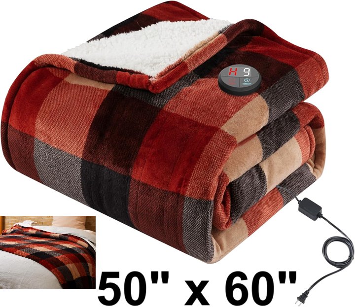 Gotcozy Heated Blanket Electric Throw - 50" x 60" - Red & Black Checkered