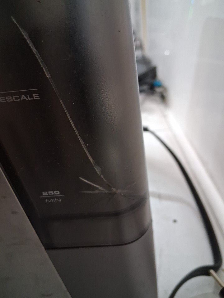 + Item is missing all accessories, the bean hopper, the water tank is cracked + + Tested for basic power only + + Item has scuffs, scratches and residual coffee grounds around it +
