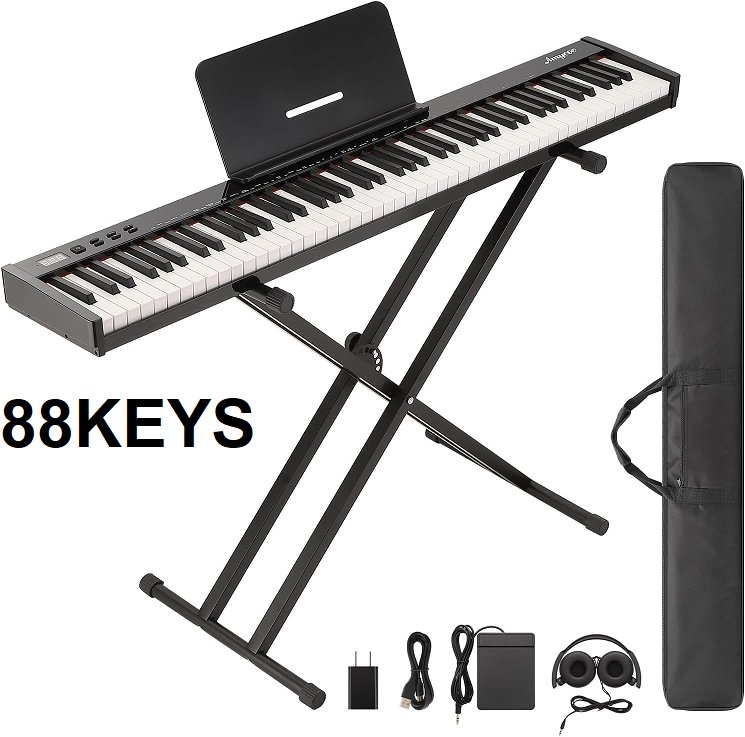 garvee electronic piano kit with stand - 88 keys - 128 tones - rechargeable battery - black