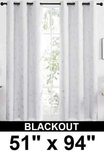 (2panel) deconovo black out gromet top curtains WITH Constellation Pattern -51" x 94" - Light Silver Grey