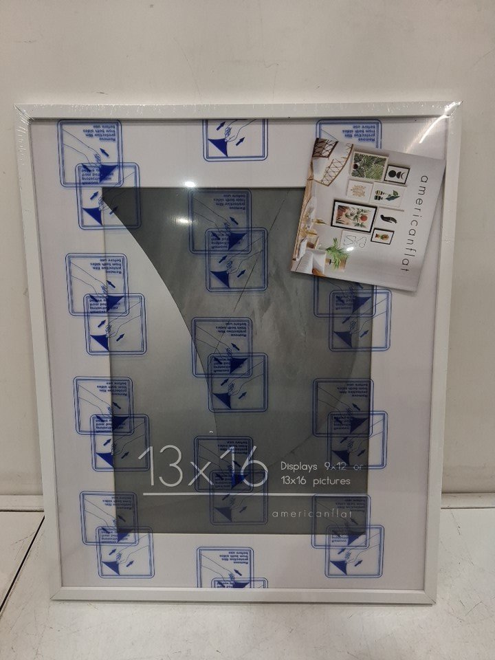 americanflat streamline collection picture frame with polished plexiglass - 13" x 16" / 9" x 12" with mat - white