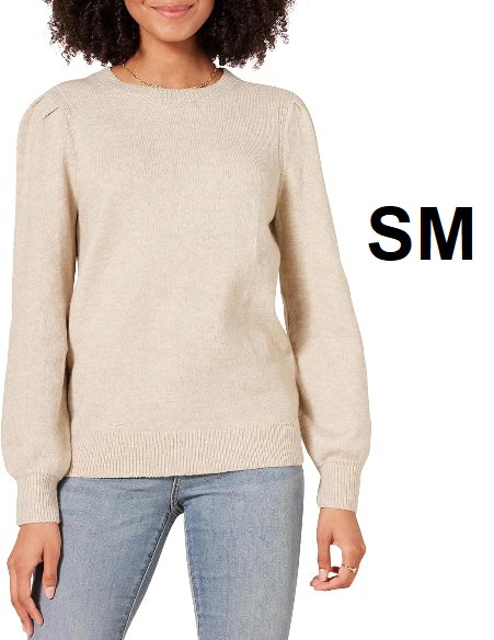 women's amazon essentials lightweight crew neck sweater with pleated shoulders - small - beige (model: aew30061f21)