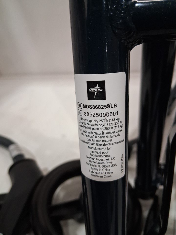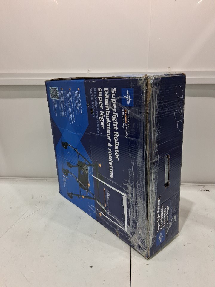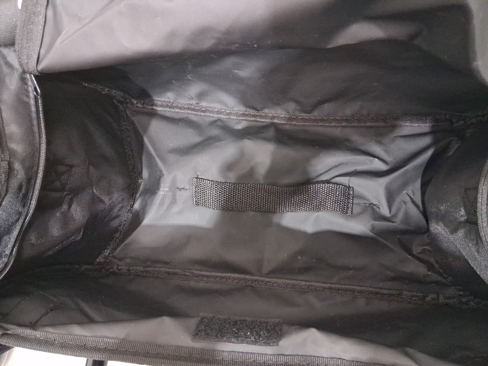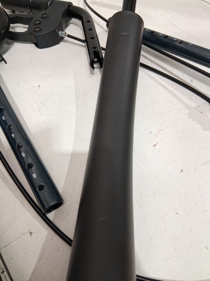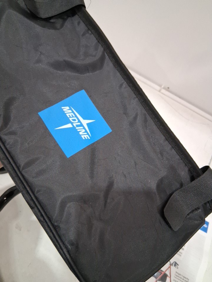 Item shows signs of light use. There are minor scuffs and scratches present throughout. There are also minor indents to the back rest piece and minor dirt present on the wheels and inside the attachable storage bag (see photos).