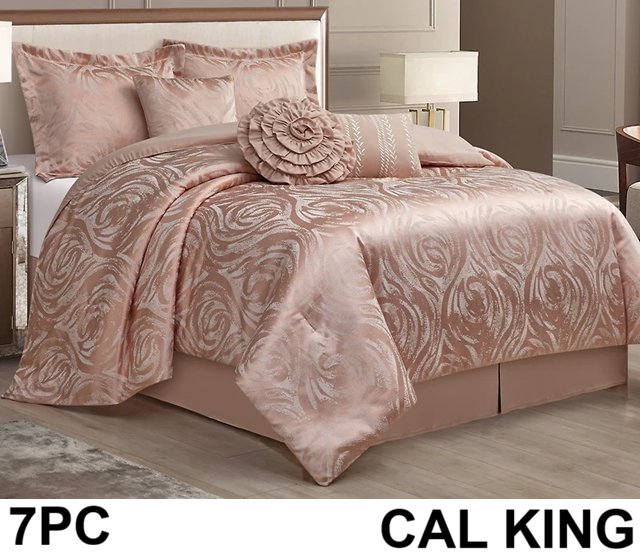 7PC ALAMEDA bed spread set with decor pillows - cal king - blush