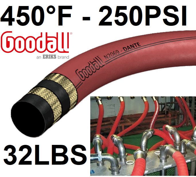 Goodall Dante High-pressure steam hose - 250PSI and 450°F - 32LBS - orange (model: N2069)
