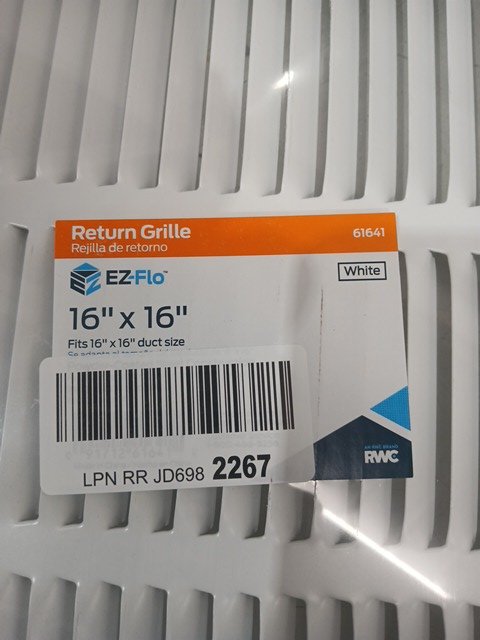 EZ-FLO RETURN AIR GRILLE - 16" X 16" OPENING - WHITE (MODEL: 61641)