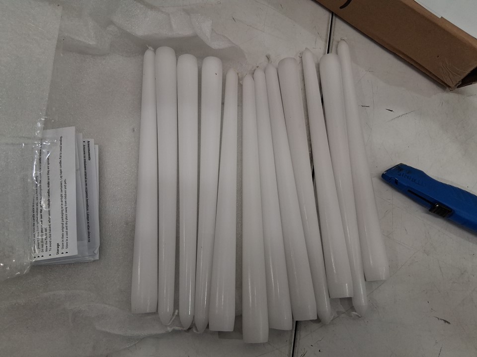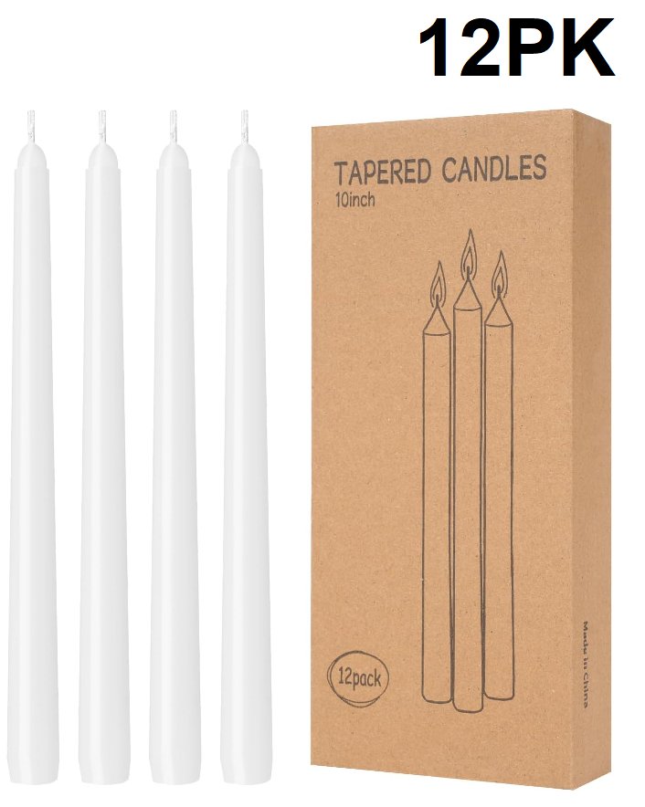 12PK TALL TAPER unscented CANDLES - 10"- WHITE