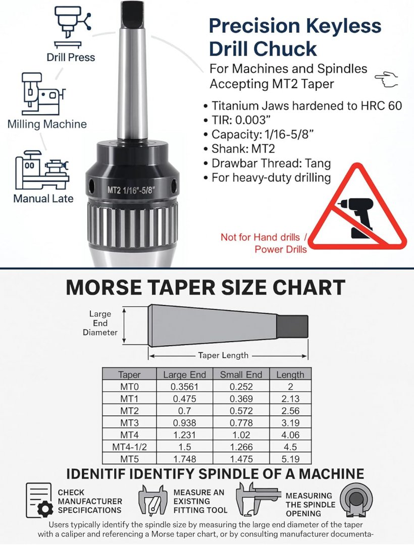 CanCNC Tooling Solutions MT2 Precision Keyless Drill Chuck -Titanium Jaws -1/16-5/8" (Model: 0537-5802)