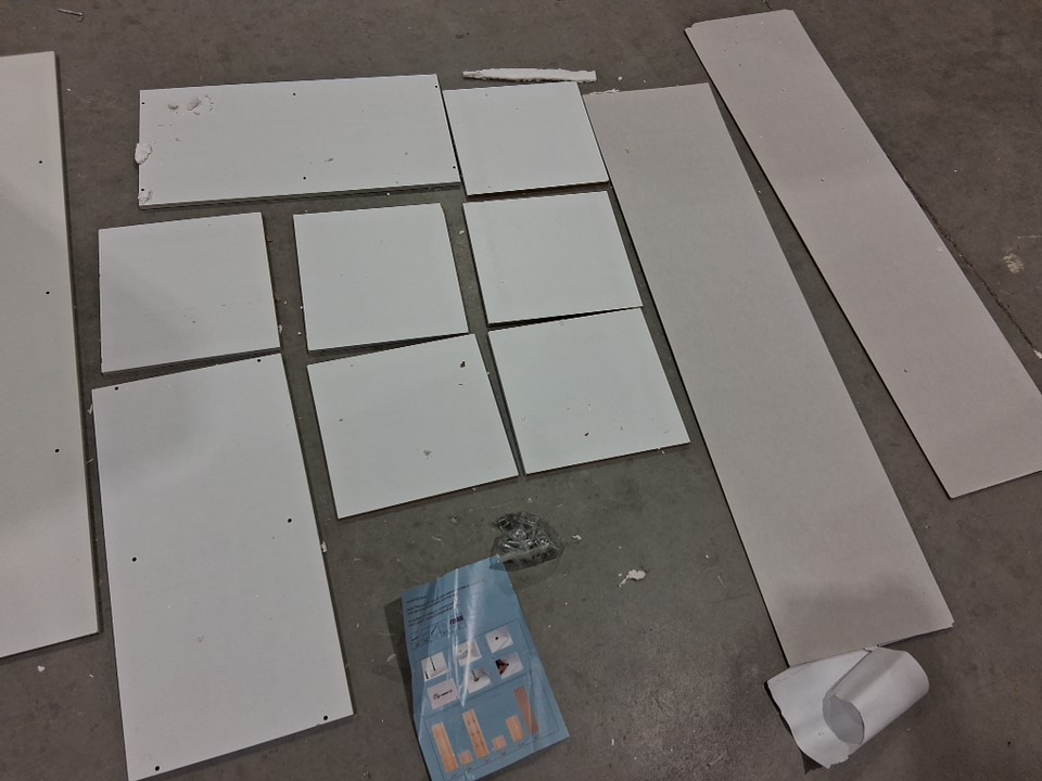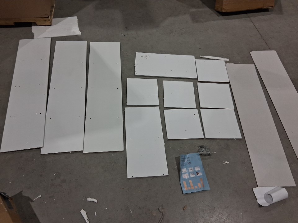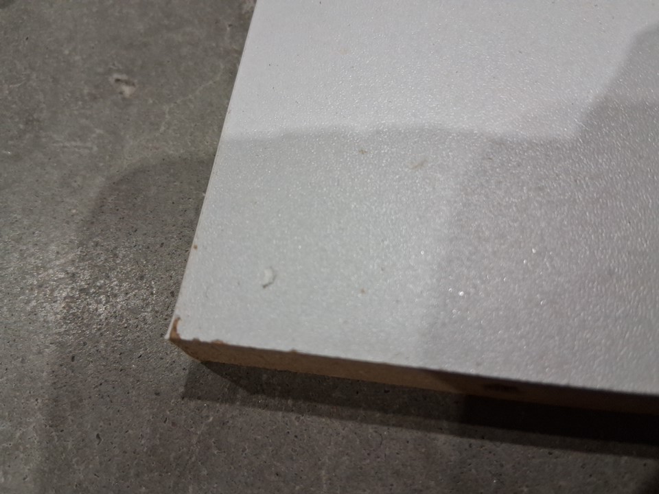 The product has scuff marks and chips off pieces taken off across every piece due to shipping/warehouse handling. See photos attached.
