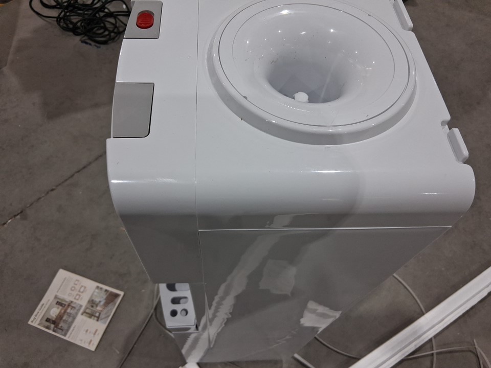 The top of the box is damp from shipping/warehouse handling. There is some liquid residue from previous usage on the product. Tested for power. See photos attached.