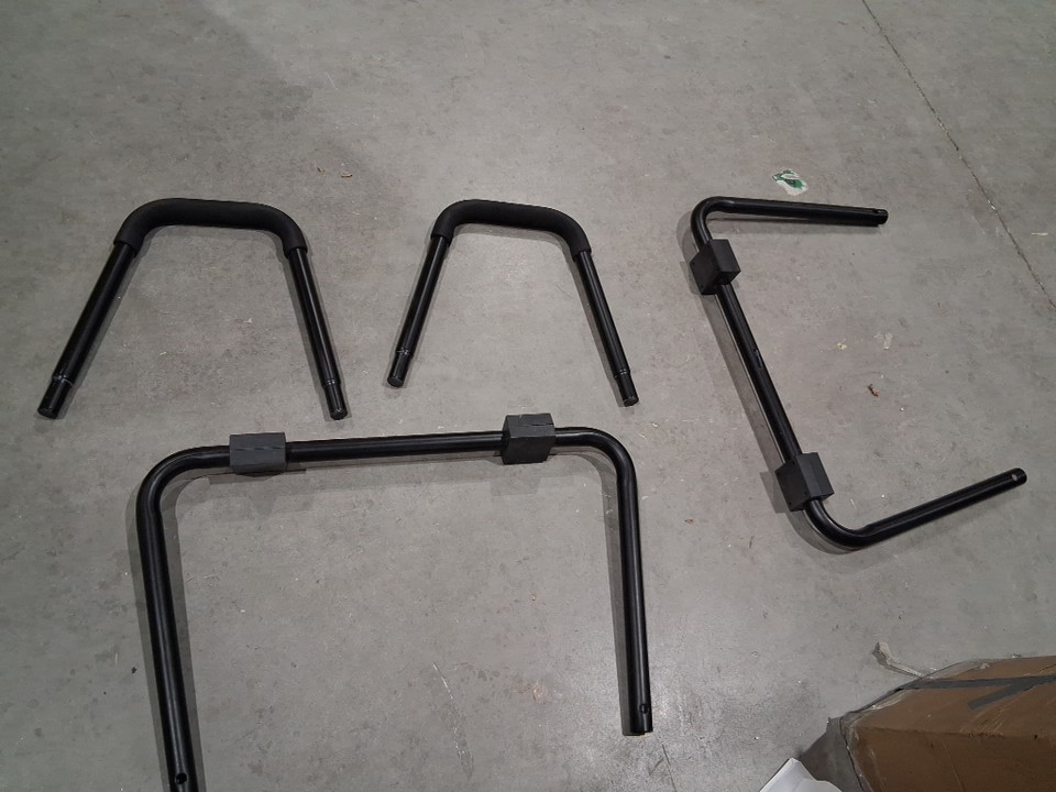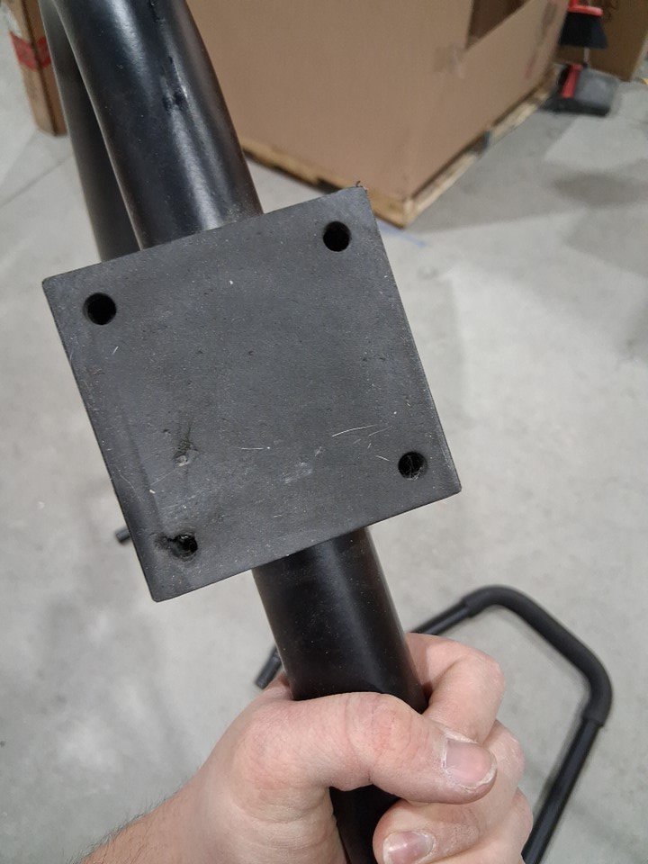 The product is missing the hardware to put it together. There is scuff marks from previous assembly/usage. See photos attached.
