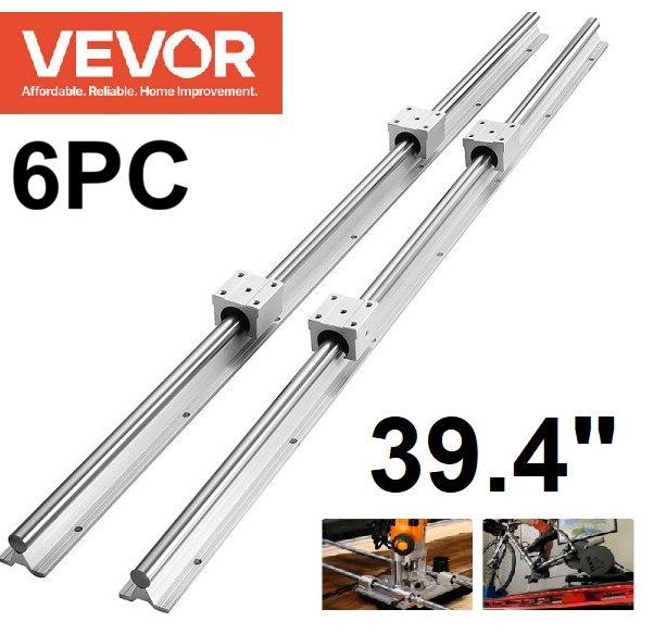 6PC Cylindrical Linear Guide Drag Rail Set - 39.4 in/1500 mm - Aluminum (MODEL: SBR16-C 1500L)